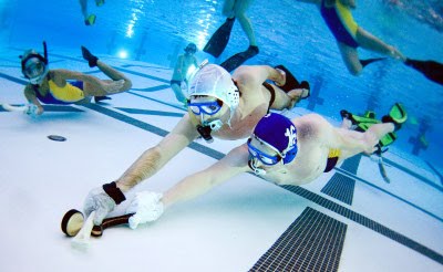 Underwater What?Underwater Hockey is a fast sport played on the bottom of a pool by teams of 6 players with masks, snorkels, fins and short sticks. Players move the puck by pushing it or passing it, trying to get the puck into the opposing team’s goal. Underwater Hockey is a limited contact, co-ed sport in which men and women can compete on equal terms. It’s about teamwork and skill, more than raw strength. And, no matter what your skill level, Underwater Hockey is a great way to have lots of fun, get fit, and make new friends. All you need to get started is a bathing suit. We’ll supply the rest of the equipment, skills training, and a good time! |